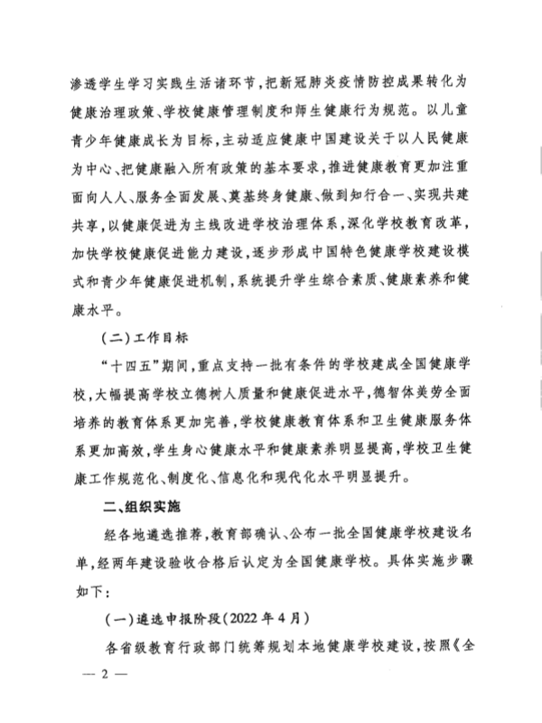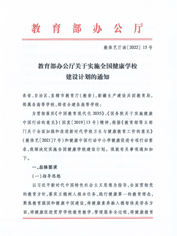教育部办公厅关于实施全国健康学校建设计划的通知